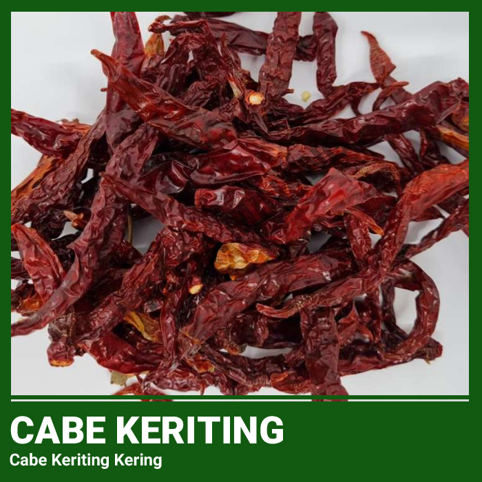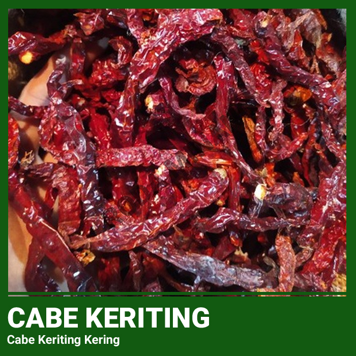-> Cabe keriting kering adalah hasil pengeringan dari cabe keriting segar, yaitu jenis cabai merah panjang yang memiliki bentuk bergelombang atau “keriting”. Cabe ini dikenal karena warnanya yang merah cerah saat matang, aroma yang harum khas cabai, serta tingkat kepedasan yang cukup sedang, sehingga banyak digunakan dalam berbagai masakan Indonesia.