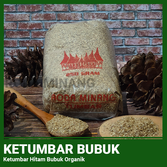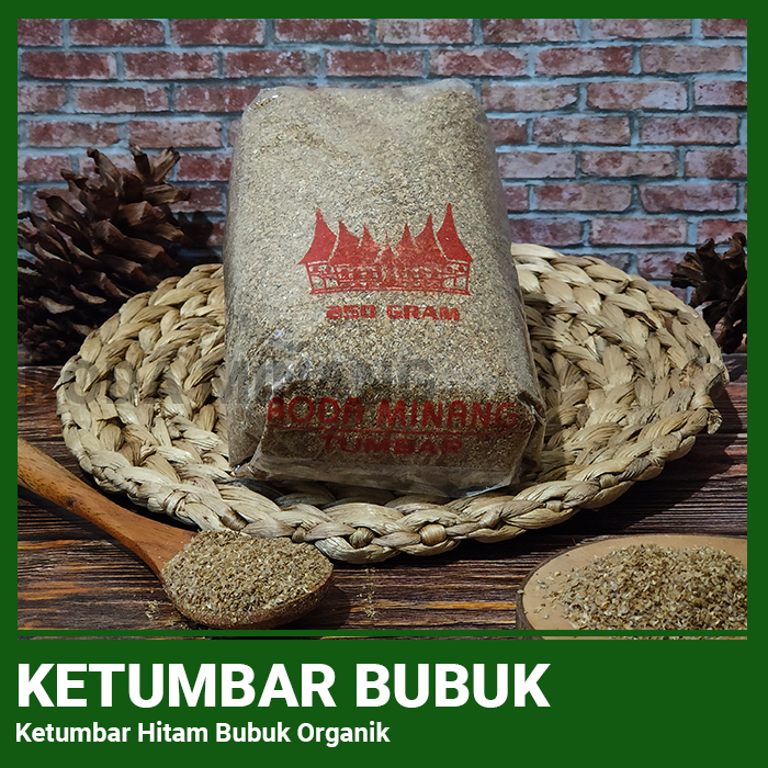 Ketumbar Hitam Bubuk, dihaluskan sedikit lebih kasar agar dapat menyisakan rasa ketumbar yang pekat pada masakan, Ketumbar di haluskan menggunakan 100% ketumbar hitam asli tanpa tambahan pengawet, sehingga aman untuk di konsumsi dan sebagai tambahan bumbu dalam masakan.