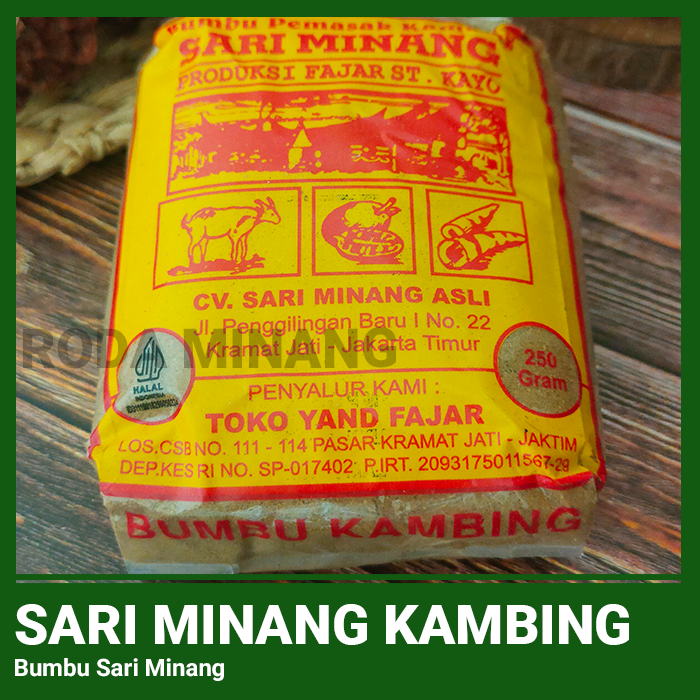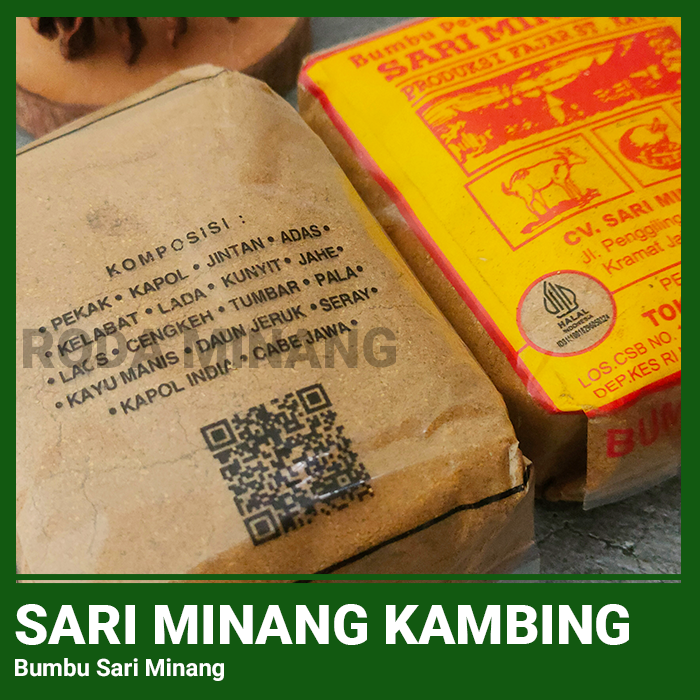 -> Sari Minang adalah produk bumbu masak rempah bubuk kering khas Minangkabau (Sumatera Barat) yang dibuat dari campuran berbagai rempah dan bahan aromatik. Biasanya Sari Minang berwarna coklat kekuningan atau kemerahan tergantung varian masakannya, serta memiliki aroma gurih pedas khas masakan Padang.
